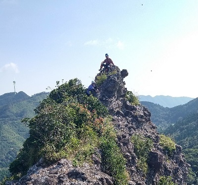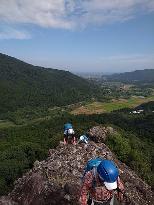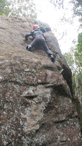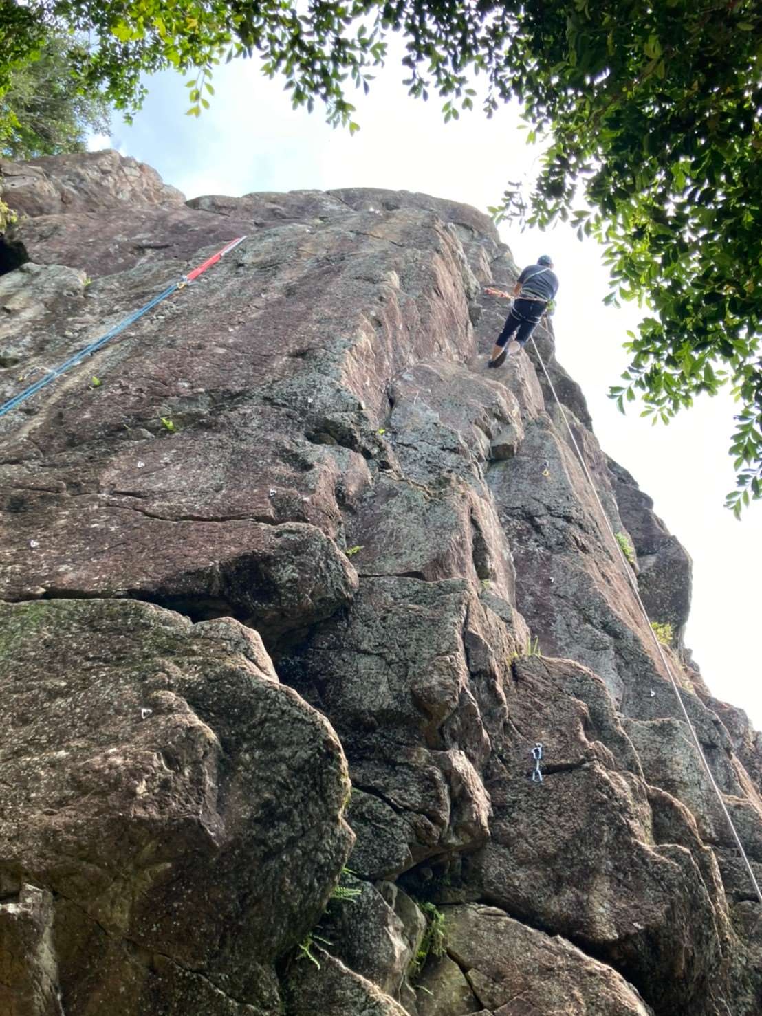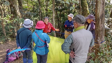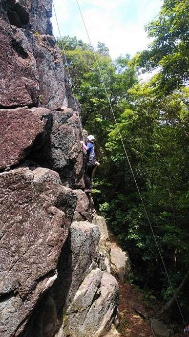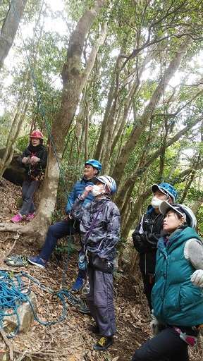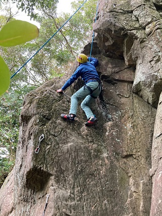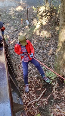 ツエルト張り、ロープワーク、スリングでチェストハーネス装着して崖の上下降 を行いました。