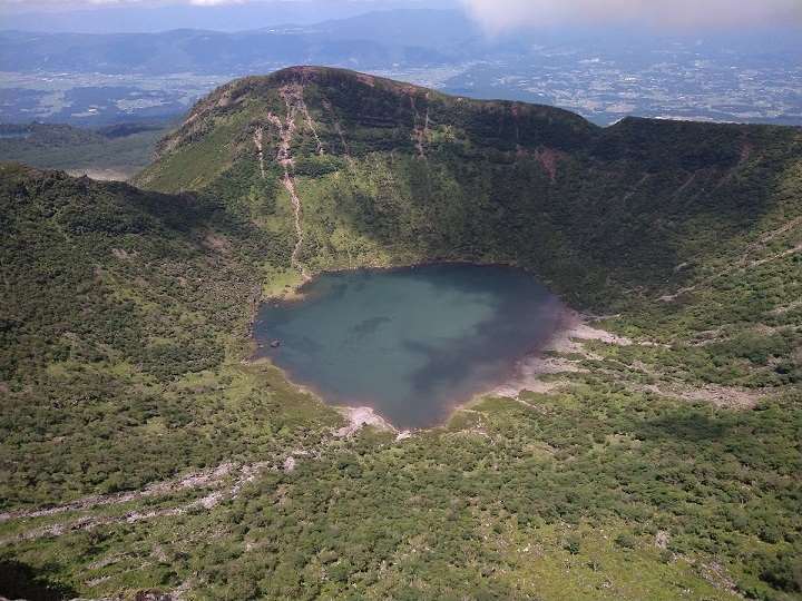 8月の雨続きで韓国岳火口に幻の湖出現!