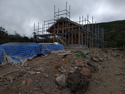 えびの高原の硫黄山 韓国岳5合目に避難小屋?建築中でした。
